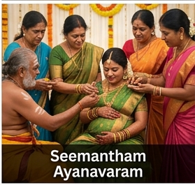 Our Ayyar team ensures that the mother is treated with the utmost respect, as she is considered a manifestation of Goddess Lakshmi during this time. We also provide guidance on the post-ritual Aacharam and diet according to the Vedas. By engaging a Sastrigal from our team, you ensure that your child’s journey begins in an environment filled with Vedic vibrations and the blessings of the elders. This ceremony not only celebrates the upcoming birth but also strengthens the bond between the husband and wife as they prepare for parenthood.